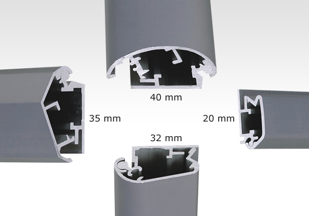 - Indywidualnego podejścia – jesteśmy w stanie wyprodukować ramki OWZ w dowolnym formacie, kolorach i profilach (20 i 32 mm, a także dwustronnych).